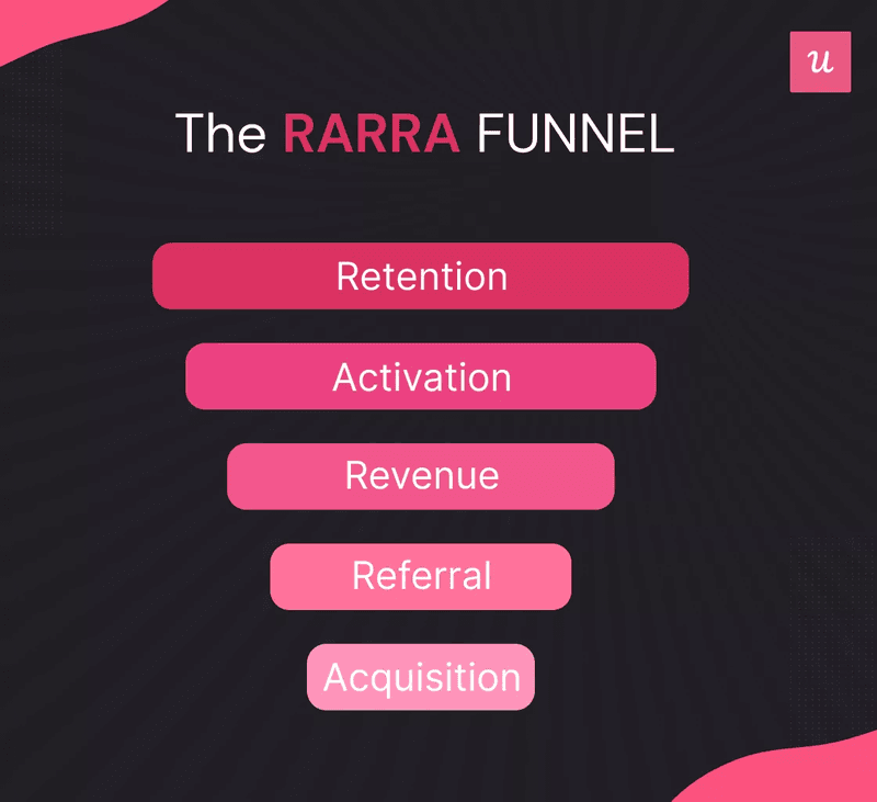 The original pirate metrics framework had to be modified and updated to fit your product-driven business model. This tweaked version is the RARRA funnel, which stands for retention, activation, referral, revenue, and acquisition.