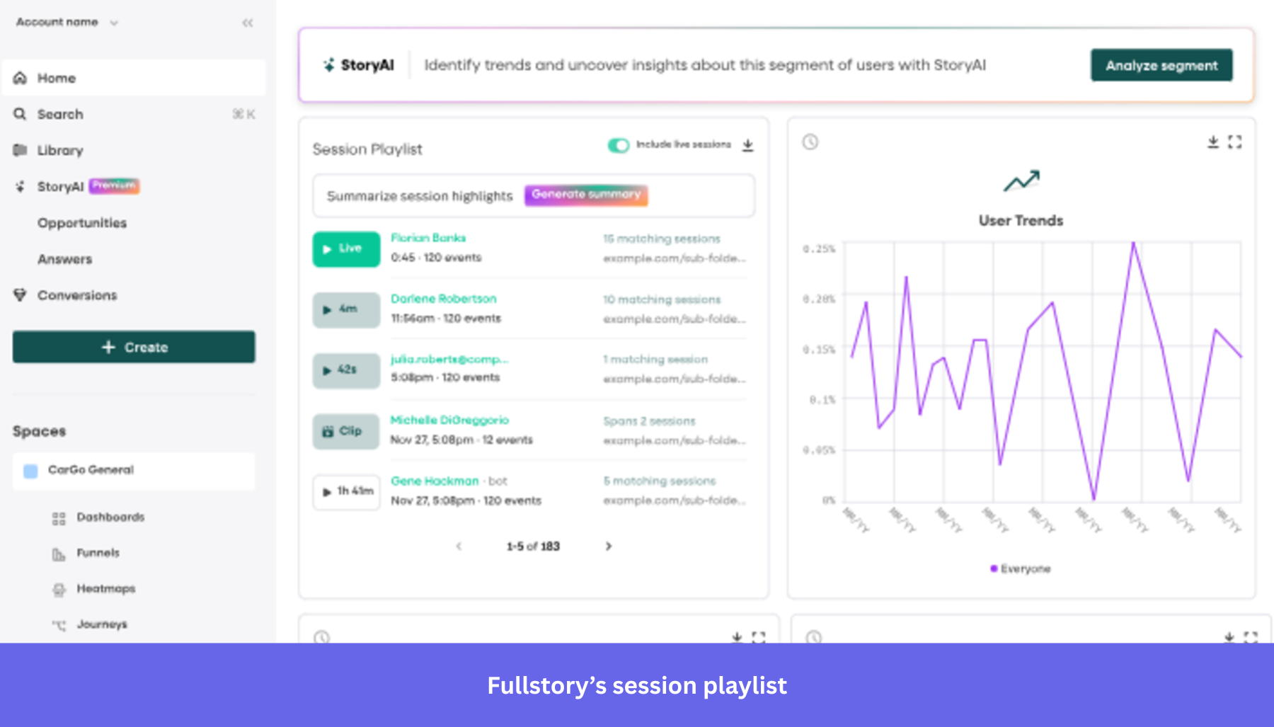 - Hotjar and Fullstory: Focus on behavioral analytics and session recording.