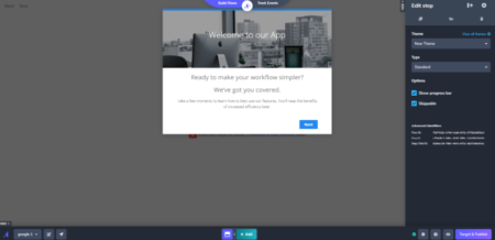 - Flow builder: It’s no-code flow builder has a variety of UI patterns to choose from, such as modals, slideouts, tooltips, and driven actions. All UI patterns are available for use regardless of which plan you’re on. All you need to do is install the Chrome extension.
