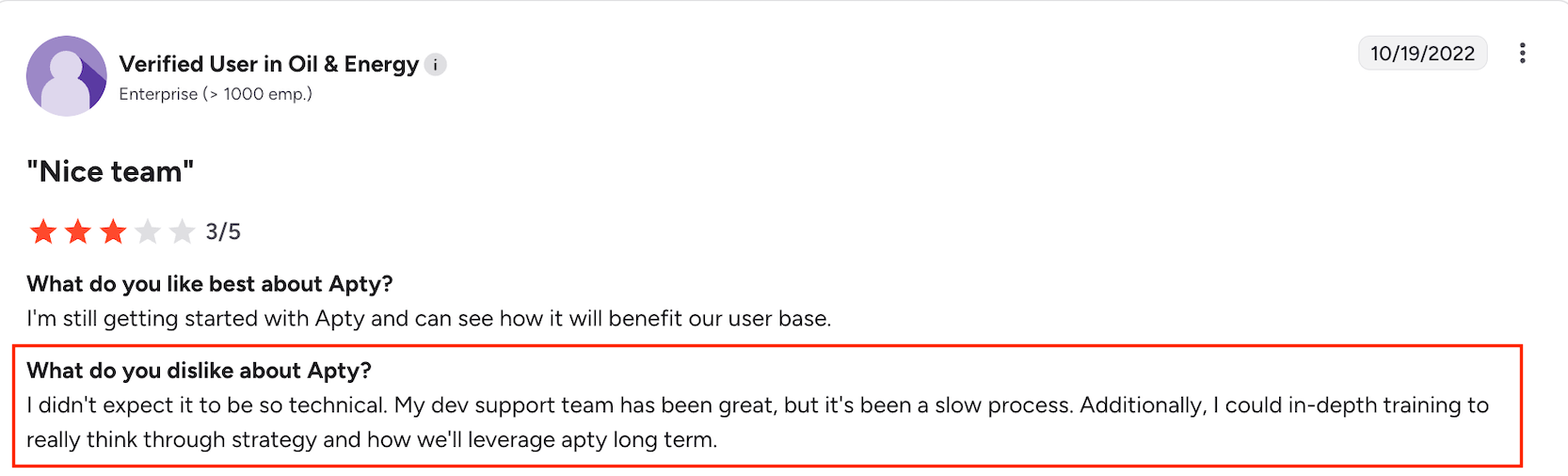 Apty is a robust enterprise platform that is well-regarded by many teams, though it isn’t without its critics. Below are real user reviews that offer honest feedback on where Apty excels and where customers feel there is room for improvement.
