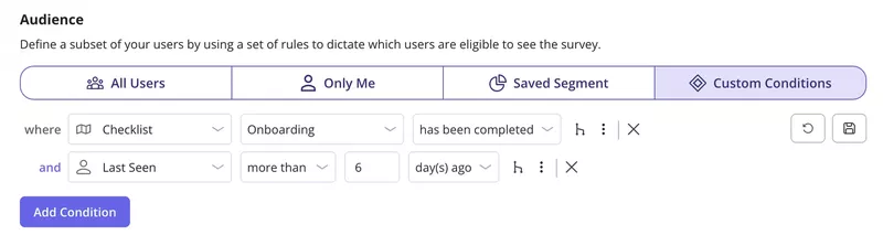 - Your user analytics tool (e.g., Userpilot) is key to automatically building the right user segments and capturing the users who meet your chosen criteria: