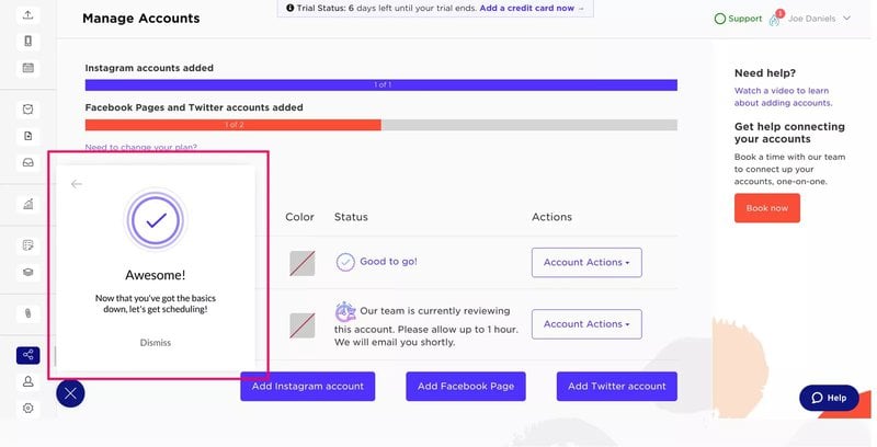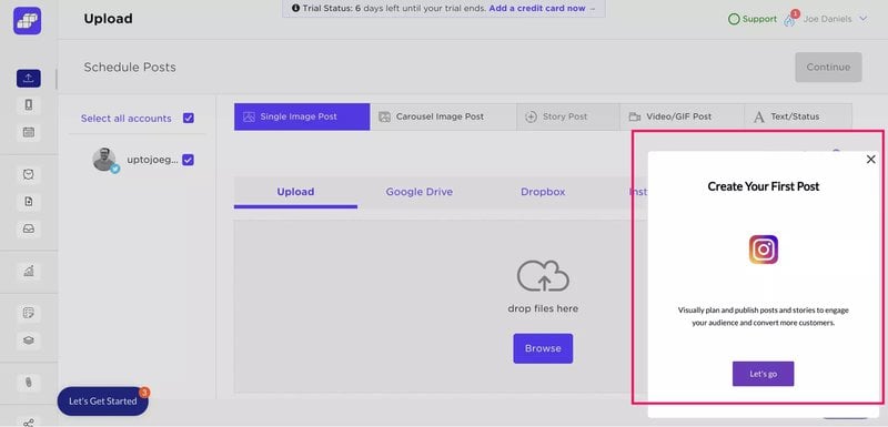 An example of this is how Sked Social used Userpilot to implement an onboarding checklist that focused on scheduling your first post. It shows up automatically when a new user signs up, leads them to the relevant page when they click on each task, and triggers a slideout to guide users throughout each step.