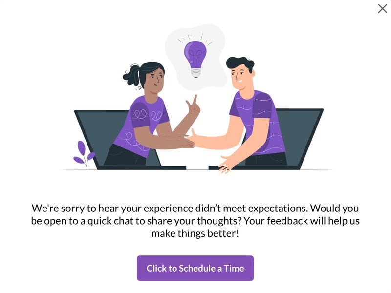 The easiest way to do it? Create custom messages that you can send automatically to acknowledge customer feedback. In the message for detractors (score 0-6), say how sorry you are that the product doesn’t meet their expectations and ask if they could help you by chatting about their pain points.