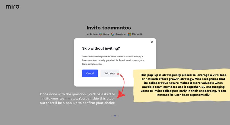First, Miro shows a good understanding of their product’s use cases and target users. So, they employ an onboarding survey to identify this use case and provide relevant templates to help users get started.