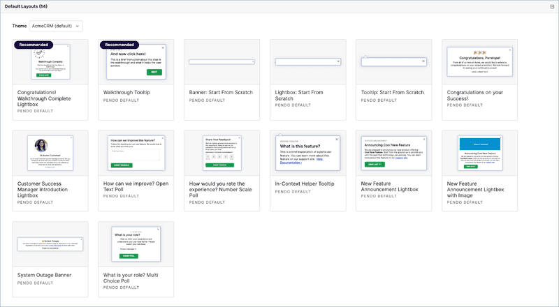 Pendo product guidance provides several UX patterns for creating product tours. Users have access to tooltips, lightboxes, polls, and banners that they can customize as needed.