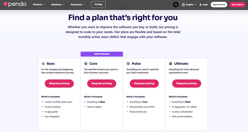 - While Pendo’s analytics suite is highly regarded, basic product analytics are included in the free plan (up to 500 MAUs). Advanced analytics (e.g., behavioral cohorts, journey analysis) require paid tiers, but foundational insights don’t. Compared to the value you’re getting, the pricing is relatively high.