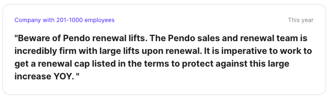 To know how much you’re likely to pay, Vendr’s data shows that the median ACV for Pendo is around $48k/yr (ranging between $15k–$146k+ depending on MAU and add‑ons).