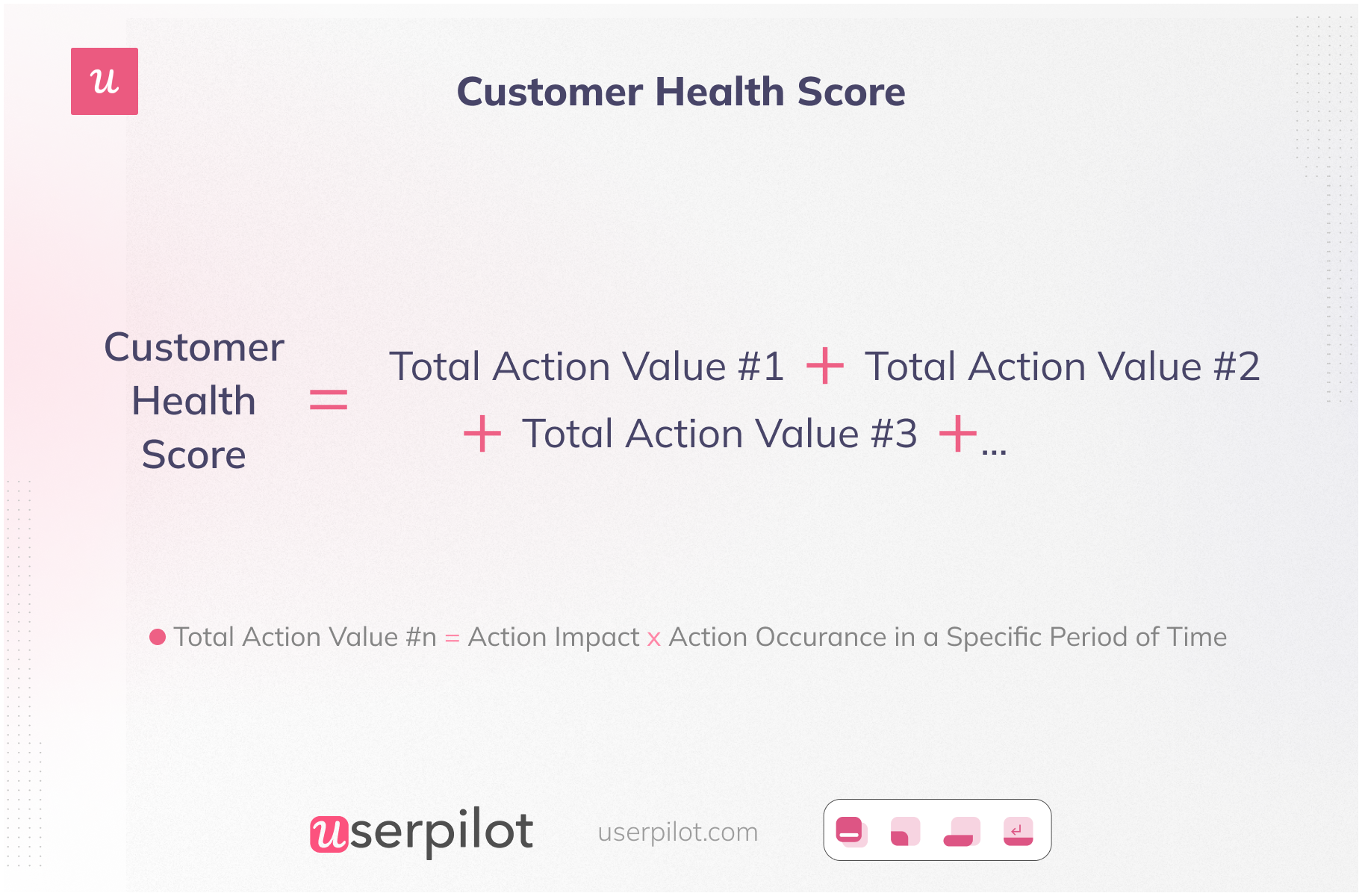 Customer Health Score = Total Action Value 1 +Total Action Value 2 + Total Action Value 3 + etc