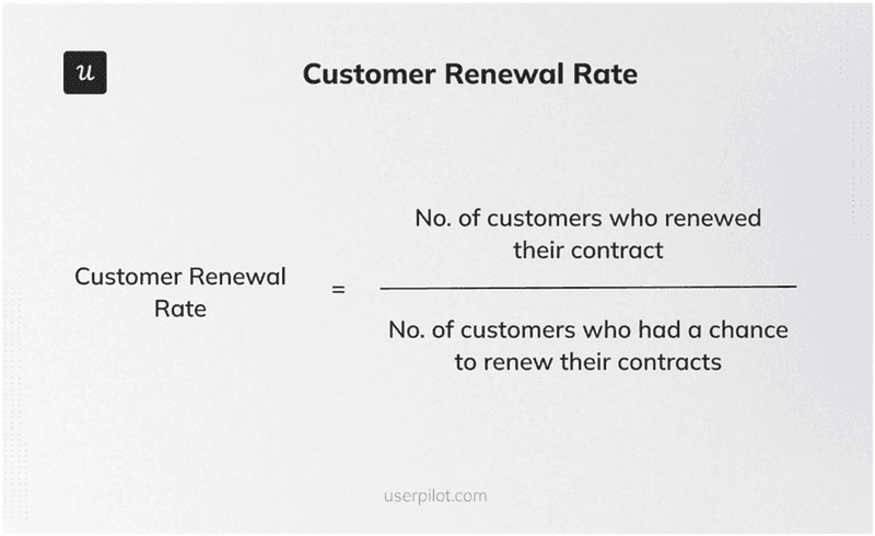 - The renewal rate is calculated as the number of customers who renew their subscription divided by the total number of customers up for renewal at any given period.