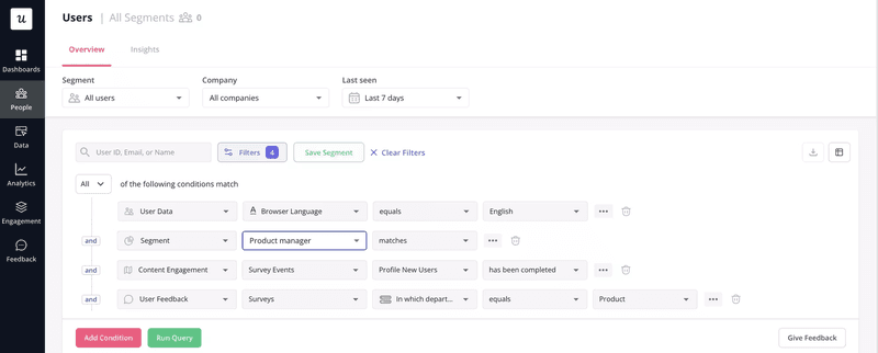 - Segmentation: Group users based on different attributes such as survey responses, NPS scores, or in-app behavior to trigger highly personalized in-app experiences.