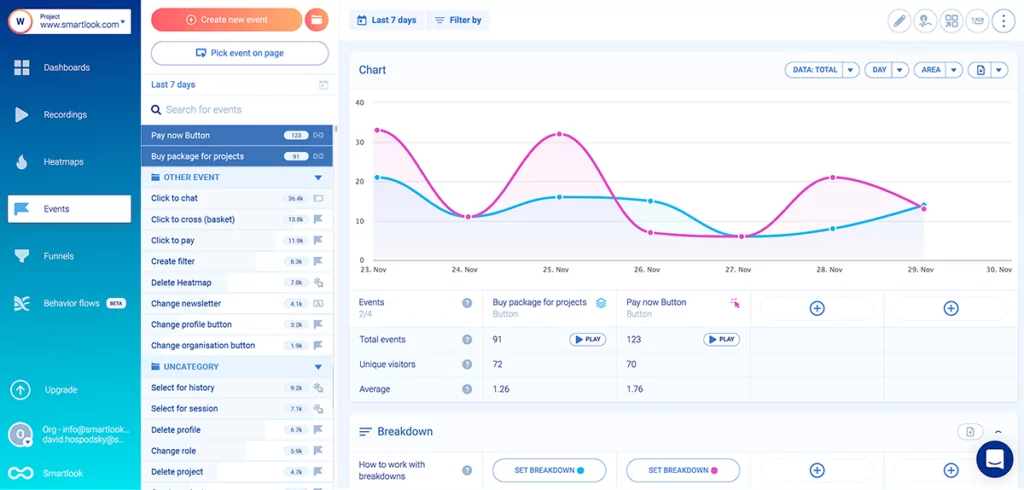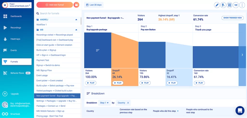 Smartlook allows you to do this at scale with thousands of users. By setting up funnels and watching drop-offs, you are essentially conducting continuous usability testing on your live product. I’ve noticed teams can spot UI confusion within hours instead of weeks.