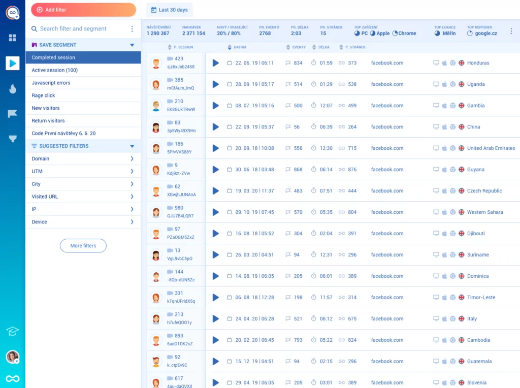 Smartlook records user sessions automatically, capturing mouse movements, clicks, and mobile taps. However, watching thousands of hours of video is impossible. The real utility lies in indexing and filtering to find problems faster than expected.