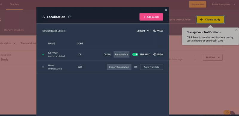 Userpilot offers localization of the in-app and mobile user onboarding flows, and the tooltip content will automatically be translated for the right users.