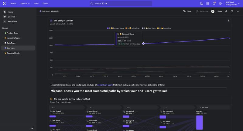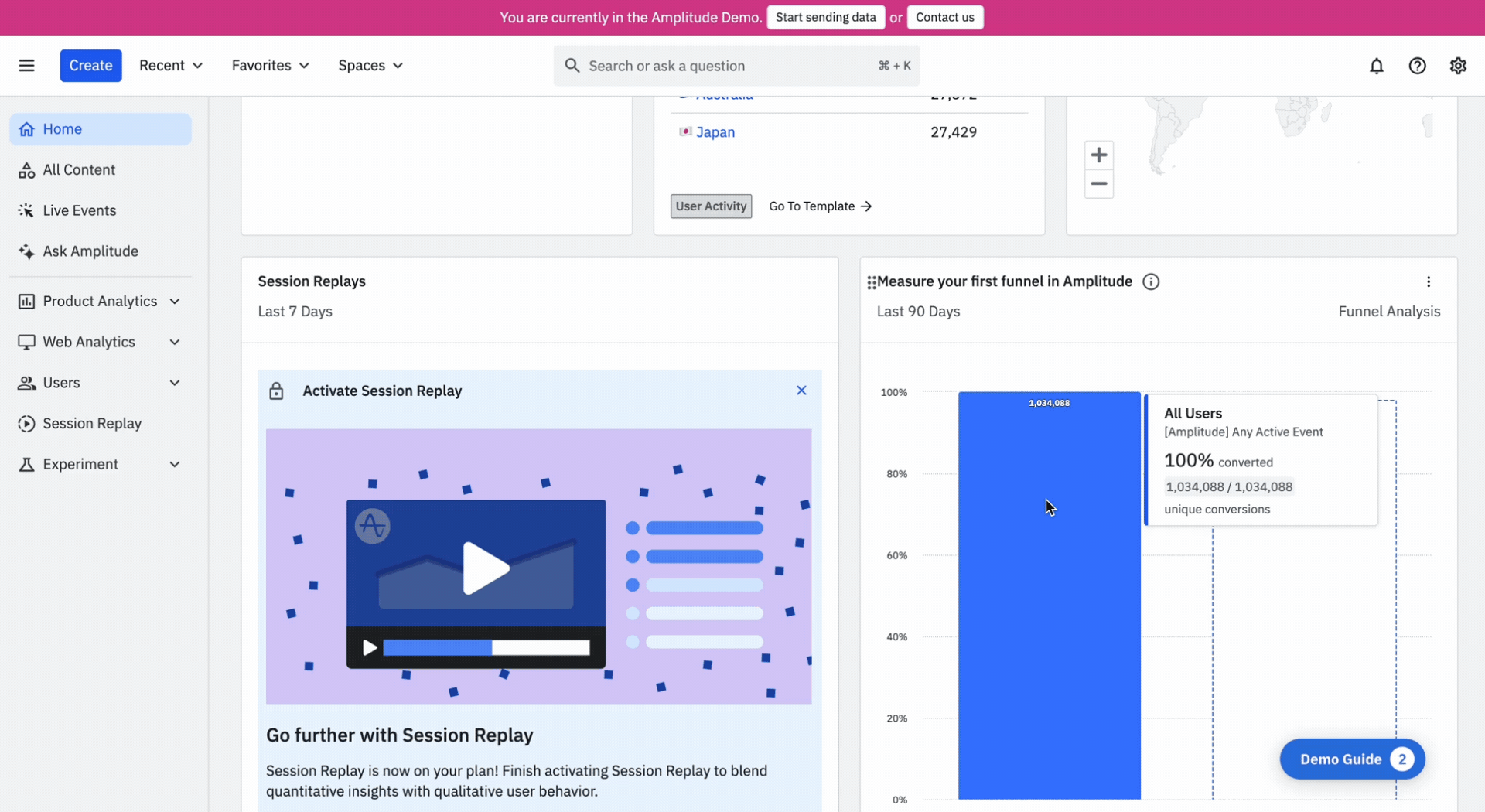 Heap addresses this challenge by adding demo data to its UI, which enables realistic user testing of advanced features.Instead of presenting a blank dashboard that might confuse new users, Heap populates its analytics tools with demo data, allowing users to explore features without needing to collect data or user feedback first.