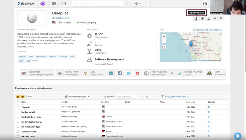 For example, Dealfront addressed data accuracy challenges by integrating Userpilot’s customer feedback widget into its UI. This allowed users to report inaccuracies themselves through a two-question in-app feedback survey.
