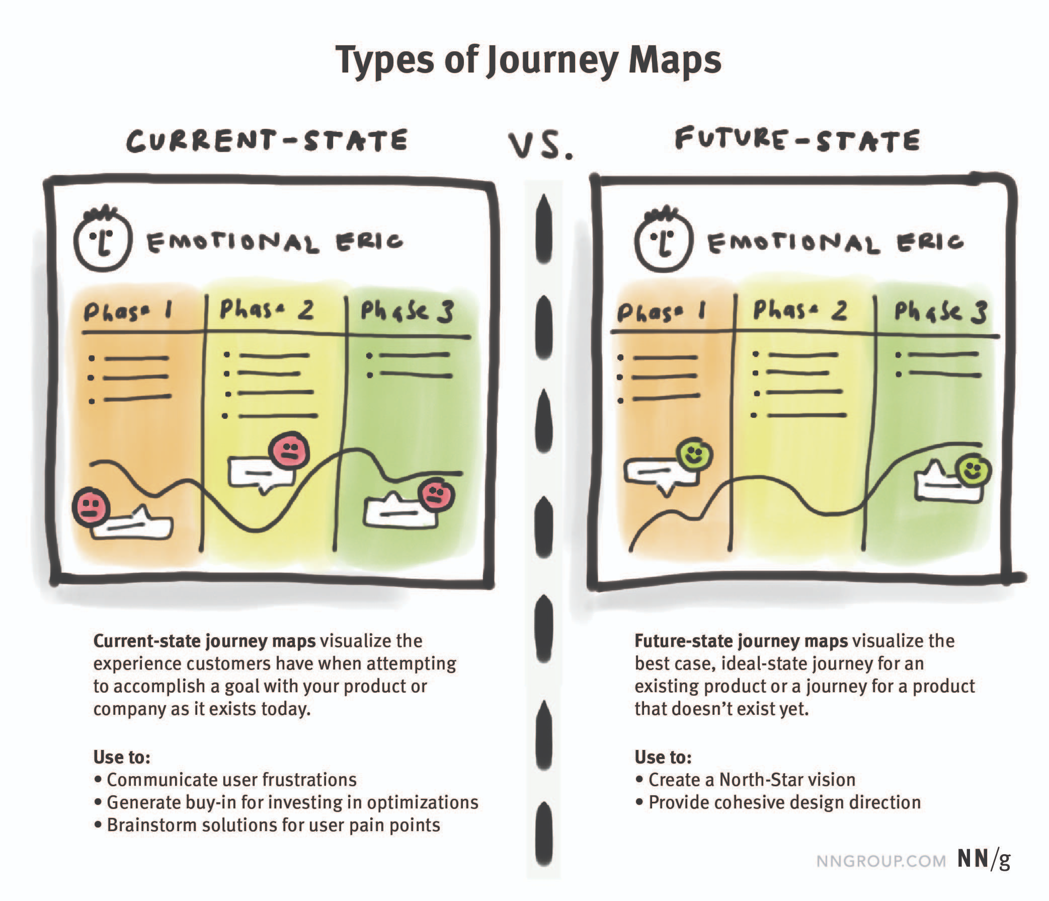 Future state user journey maps can also help product and UX design teams test and validate a vision before investing resources into its implementation.