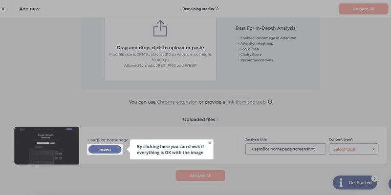 The free trial users were required to take only two simple actions: upload a screenshot of the ad or website they want to conduct heatmap analysis with and tag extra “areas of interest” they want to analyze.