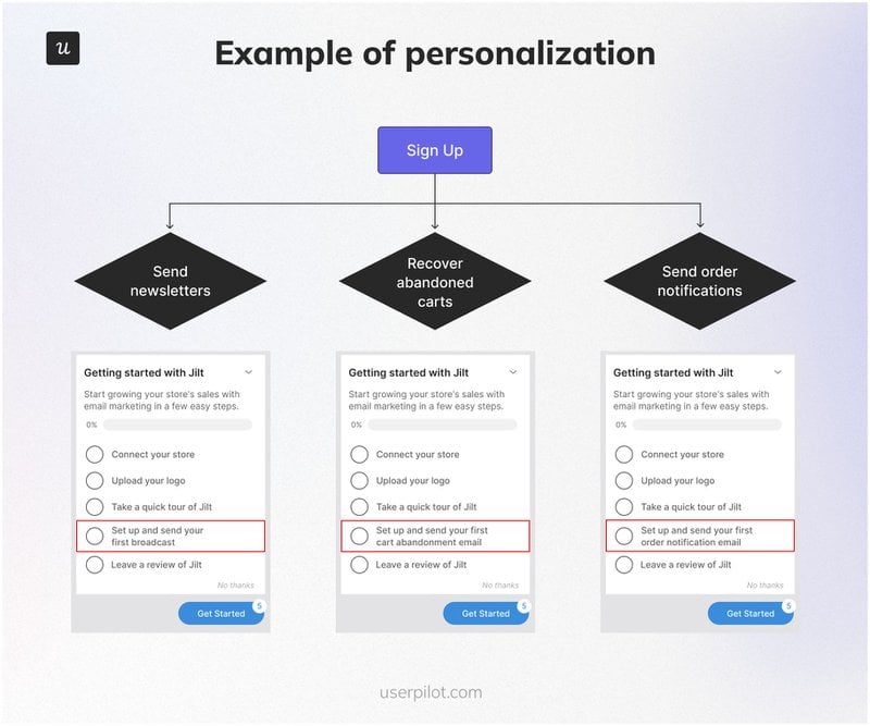For instance, here is how you can personalize an onboarding checklist based on your customers’ JTBDs: