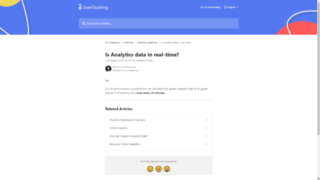 - Analytics Limitations: One of the biggest limitations of UserGuiding’s analytics capabilities is the fact that you can’t view data in real-time. All analytics are only calculated and refreshed once every 10 minutes, so you’ll need to wait for dashboards to be updated before checking metrics.
