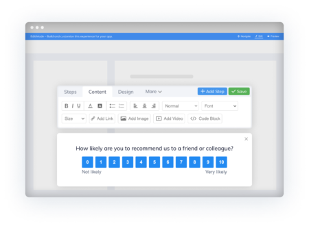 - Run NPS and other short forms of in-app surveys to gather feedback at key moments.