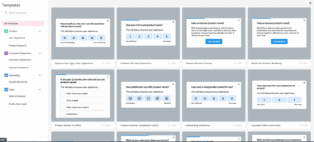 - Create different in-app VoC engagements such as NPS surveys, micro surveys, ratings, and custom surveys.