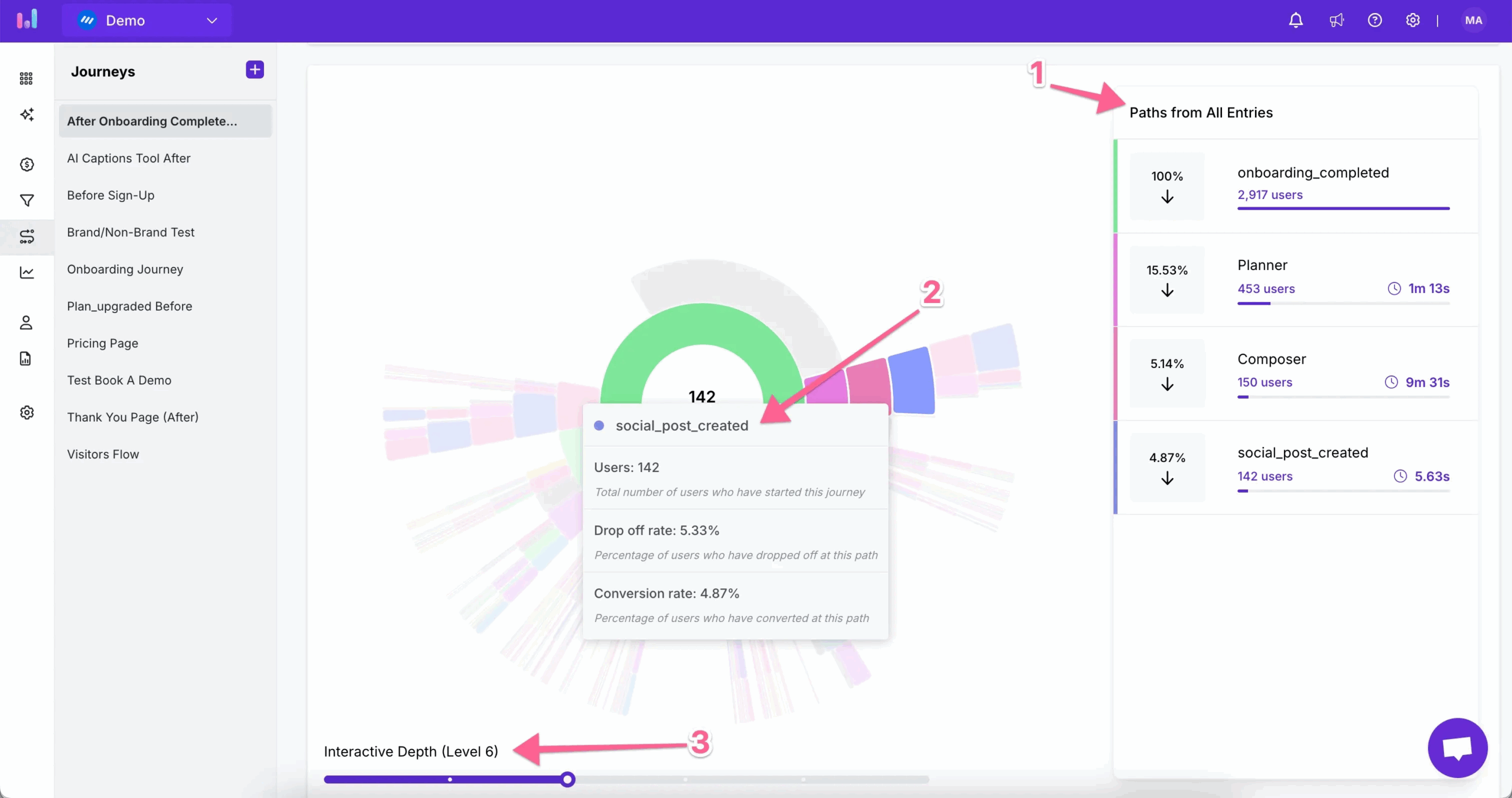 You can analyze journeys within a single session or across multiple sessions over time, giving you both short-term and long-term behavioral insights.