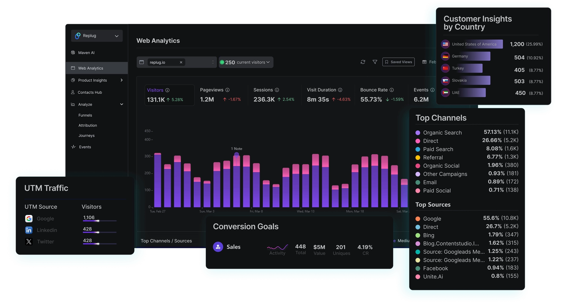 - Audience insights: Break down visitors by device and location so you can create personalized engagement strategies.