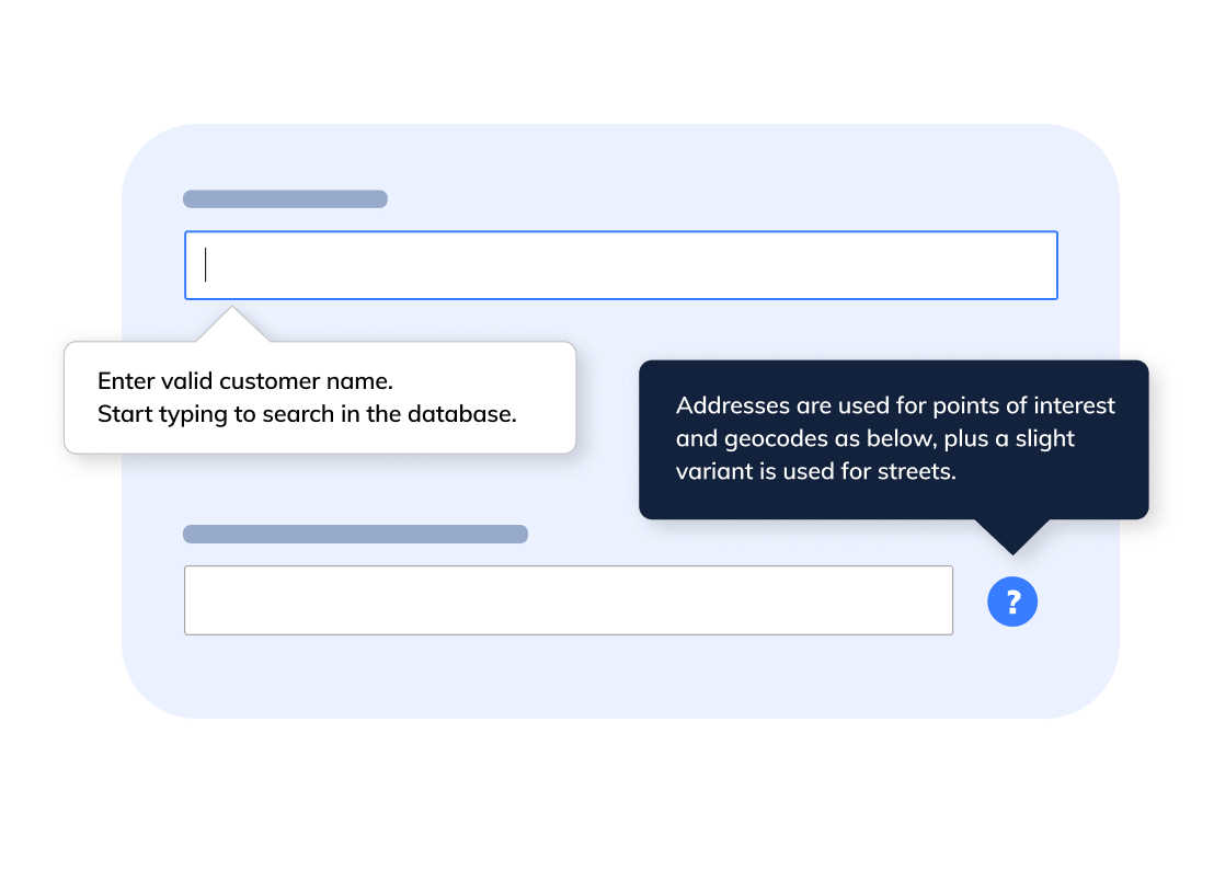 Smart tips appear when users hover over an element, answering questions before users even ask them. They prevent mistakes, eliminate guesswork, and help users move forward with confidence.
