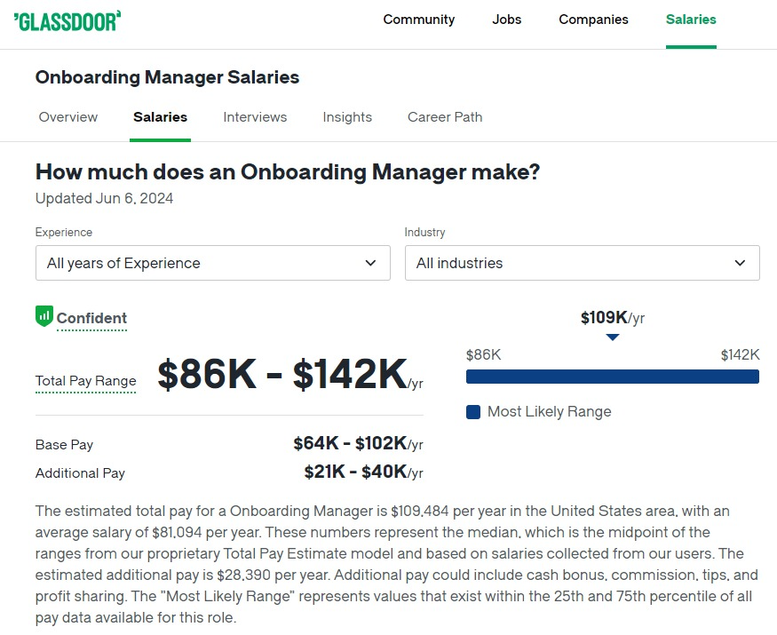 Here’s a breakdown of Customer Onboarding Manager salaries based on experience level and location, compiled from Glassdoor, Indeed, and Reed: