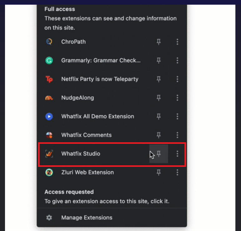 This is where most login related confusion tends to happen, especially for content creators. Logging into the dashboard alone isn’t enough to build guides. To create user walkthroughs, tooltips, and flows, you also need access to Whatfix Studio, which runs as a browser extension and operates directly on top of your application.
