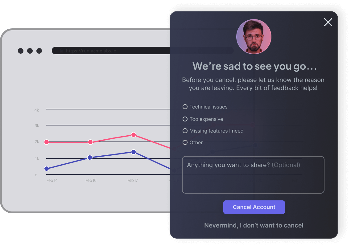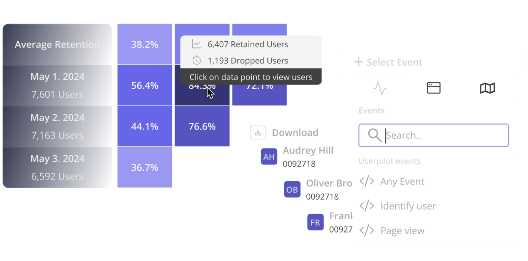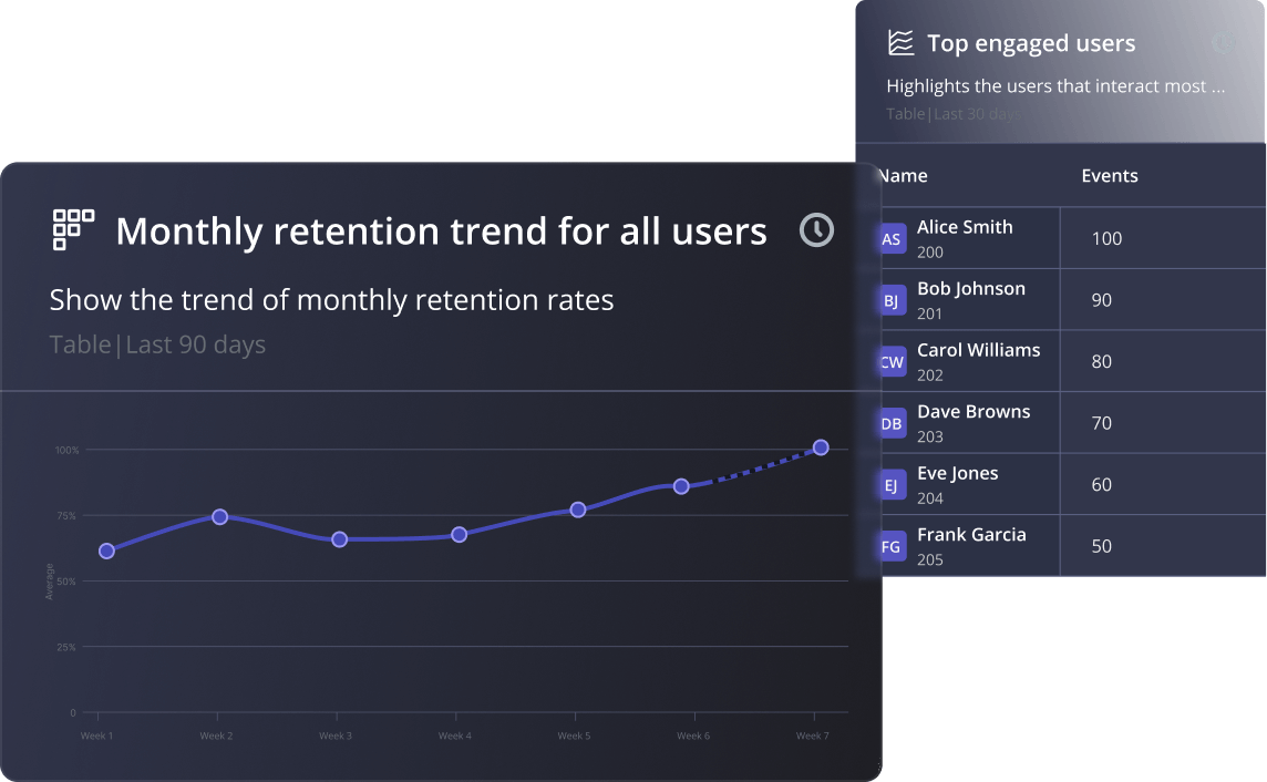 Identify reasons for churn with Product Analytics and in-app Surveys, and use these insights to guide your users and improve retention.