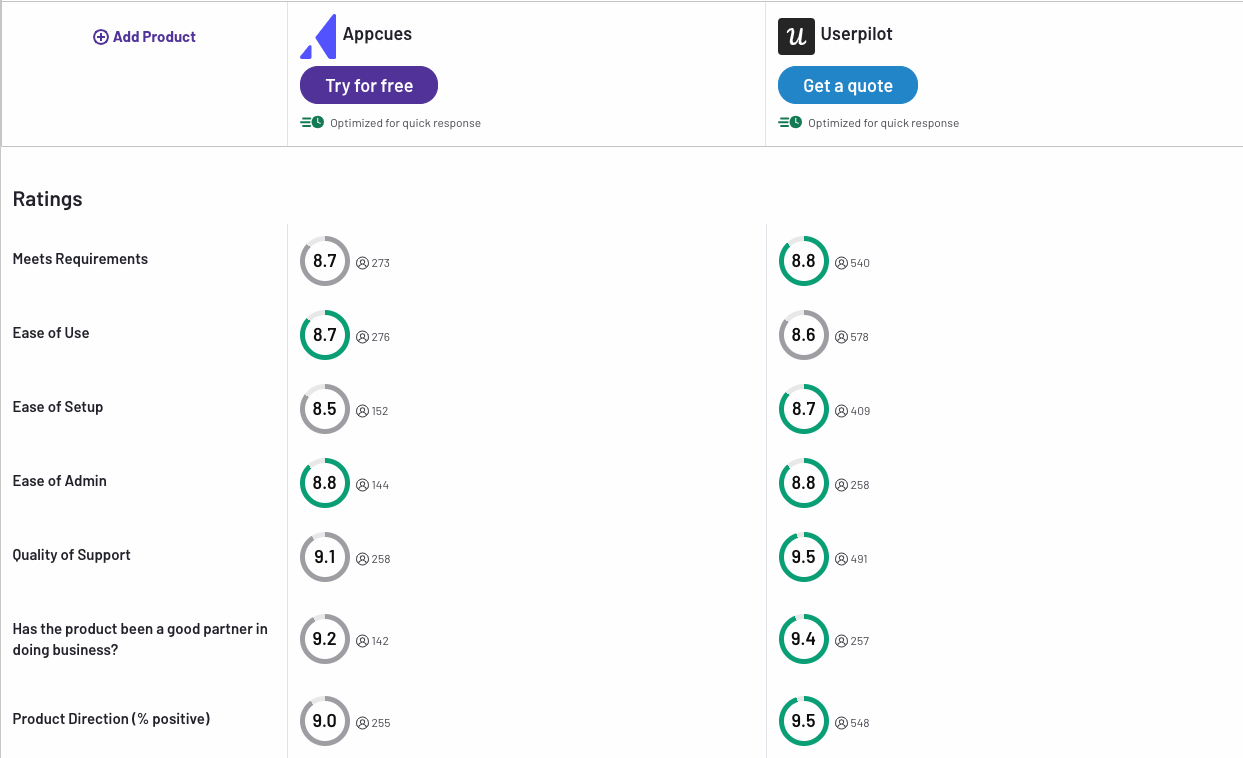 We switched to Userpilot from Appcues. Apart from being easier to use, Userpilot offers much better product analytics & tracking and a much wider number of features (e.g. resource centre – which was a great bonus!). The one stand-out thing though is their customer support. We have both a dedicated account manager and a dedicated technical support who are always at hand and happy to jump on a call whenever we need to. This is very important to us. We are so far very happy with the switch, and use it from everything from onboarding tours, announcements and surveys.